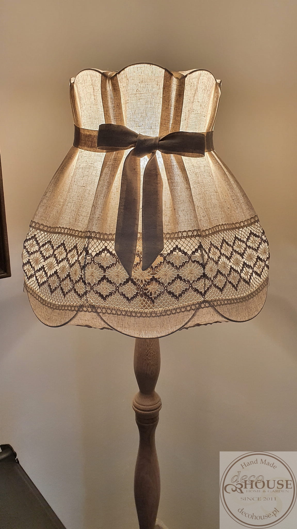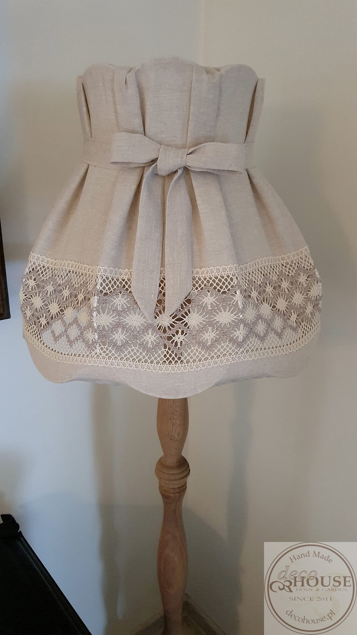 Abażur lniany z koronką