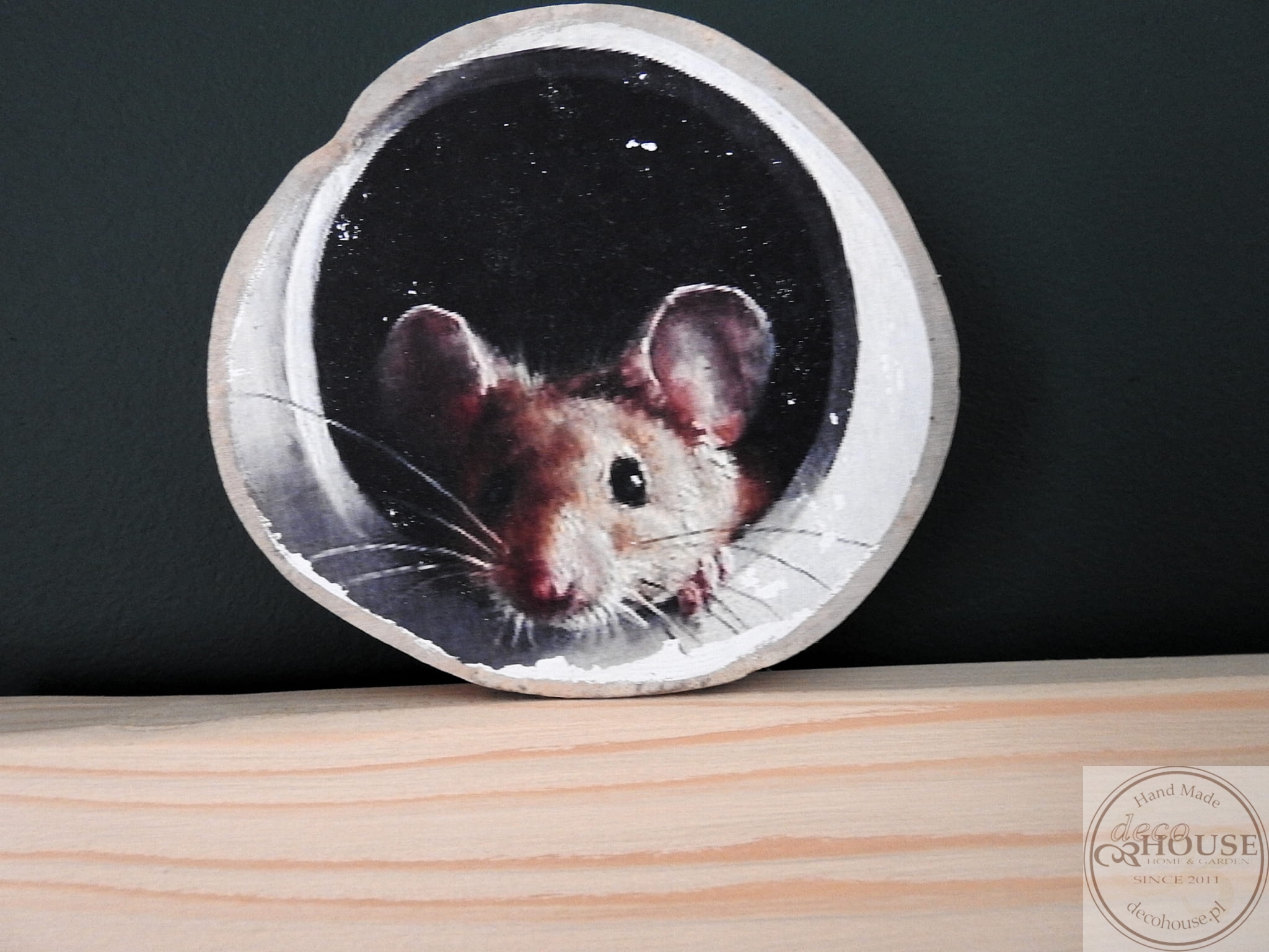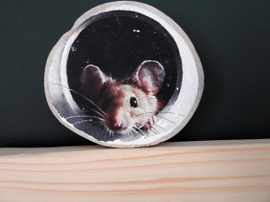 Myszka na plastrze drewna