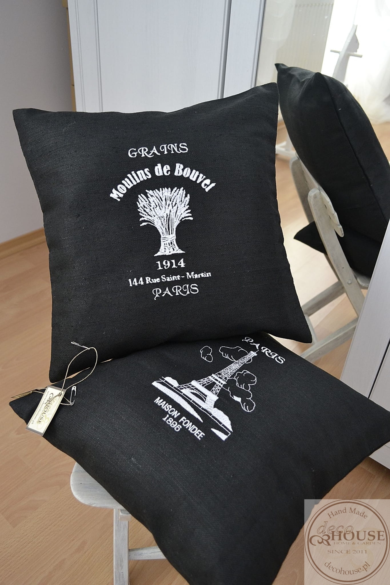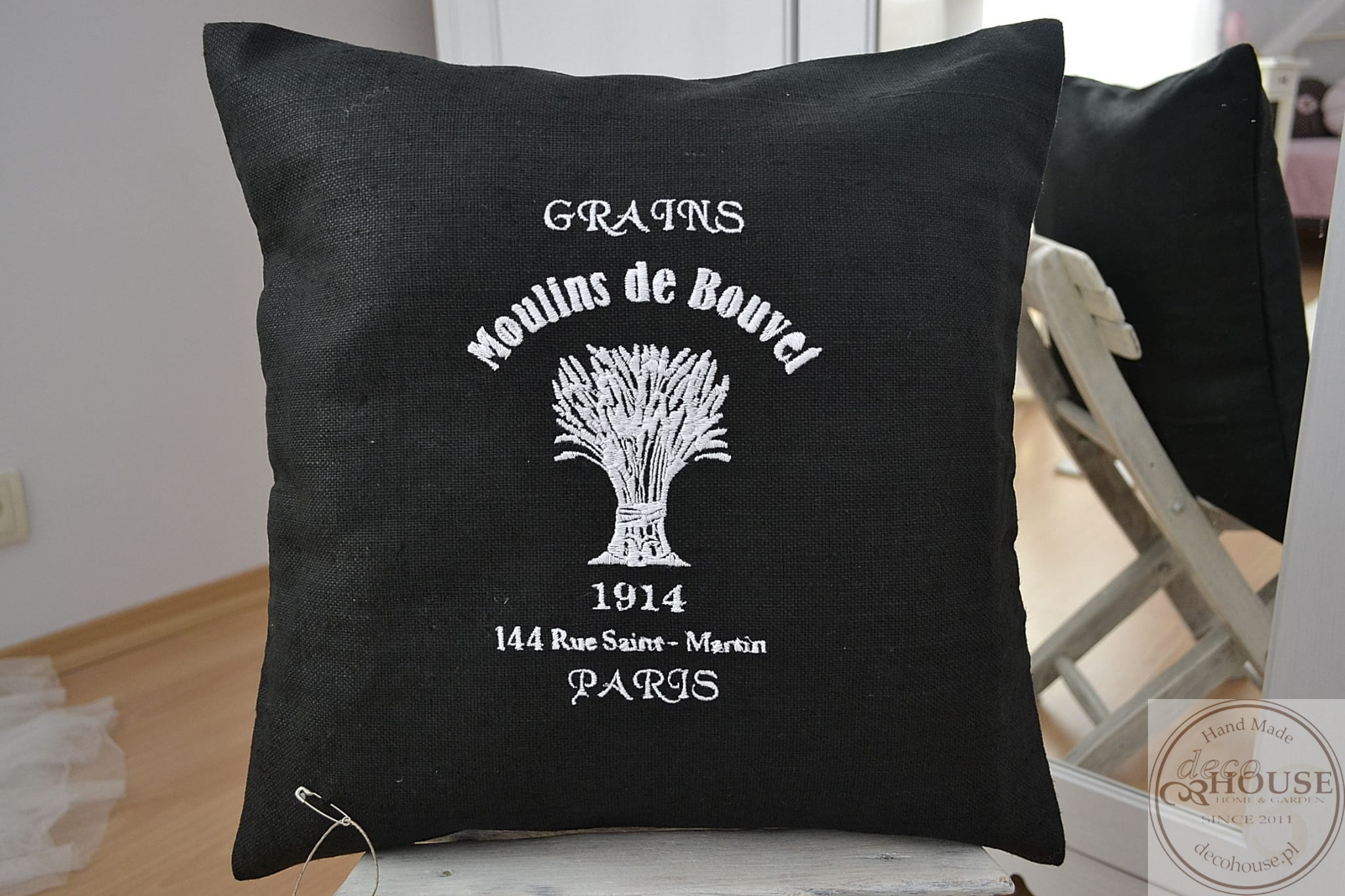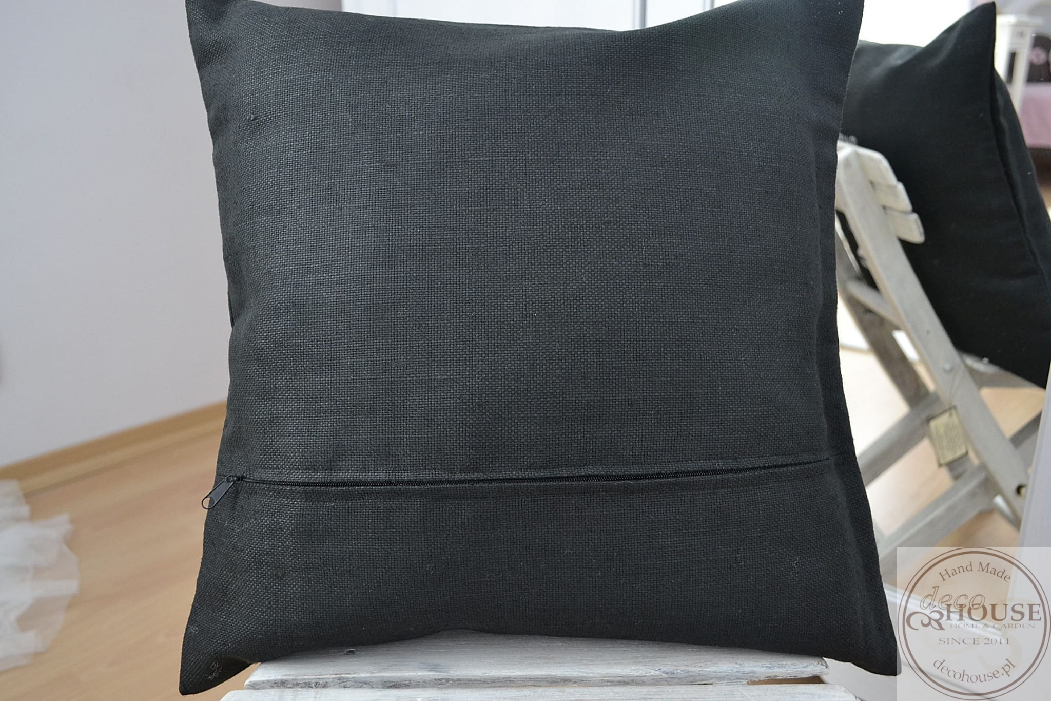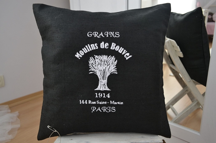 Poszewka uszyta z czarnego lnu z ozdobnym haftem , w tyle zapinana na zamek. Poszewka ozdobi każde wnętrze.