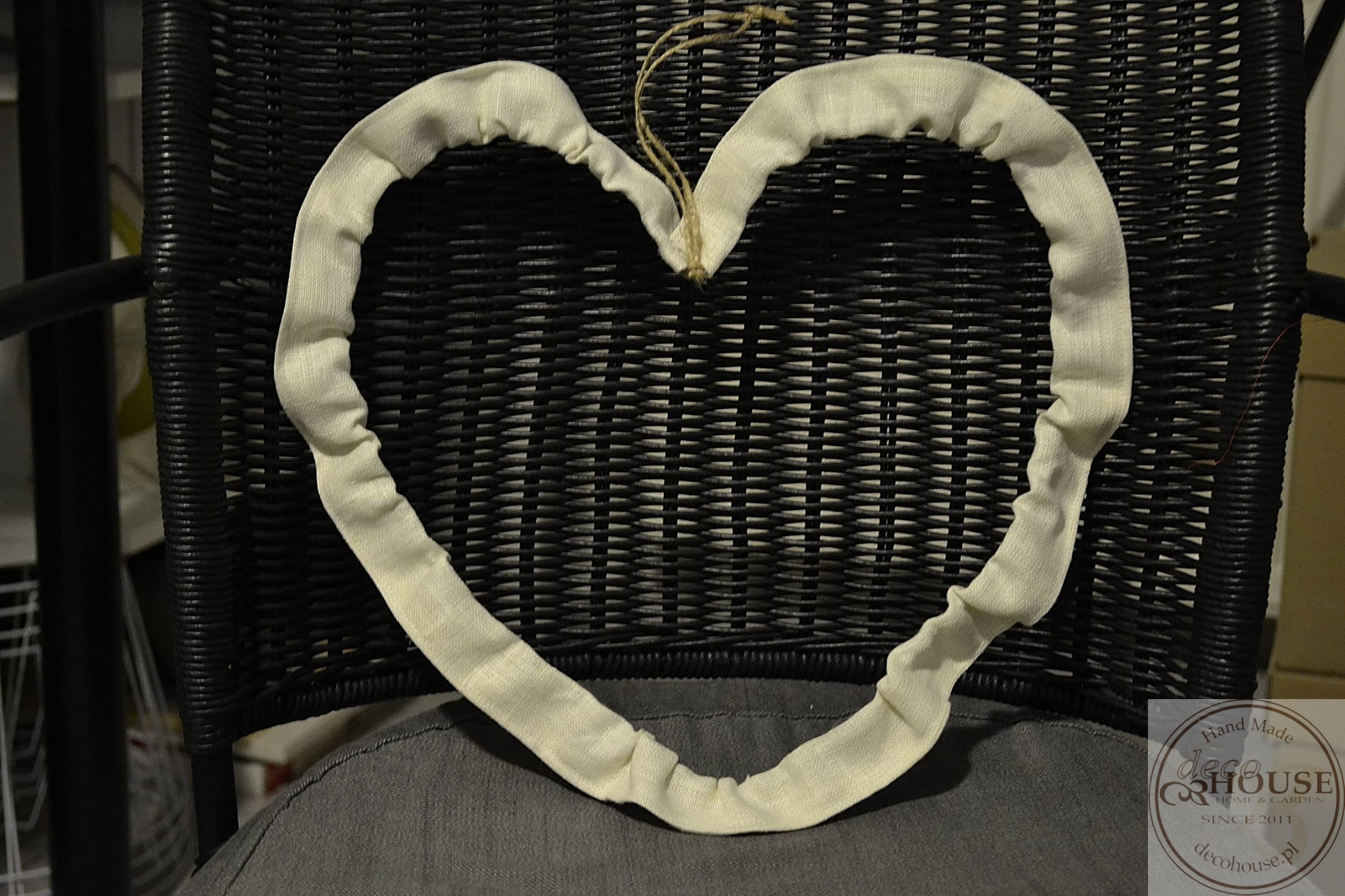 Serce wykonane z tkaniny len na sznurku lnianym. Serce można powiesić na ścianie. Takie serce będzie piękną dekoracją w każdym miejscu mieszkania.