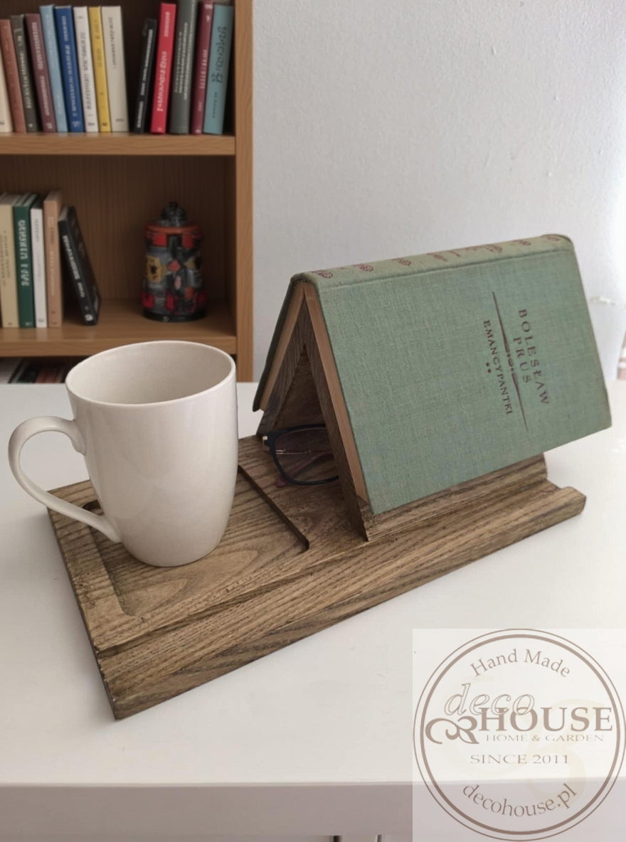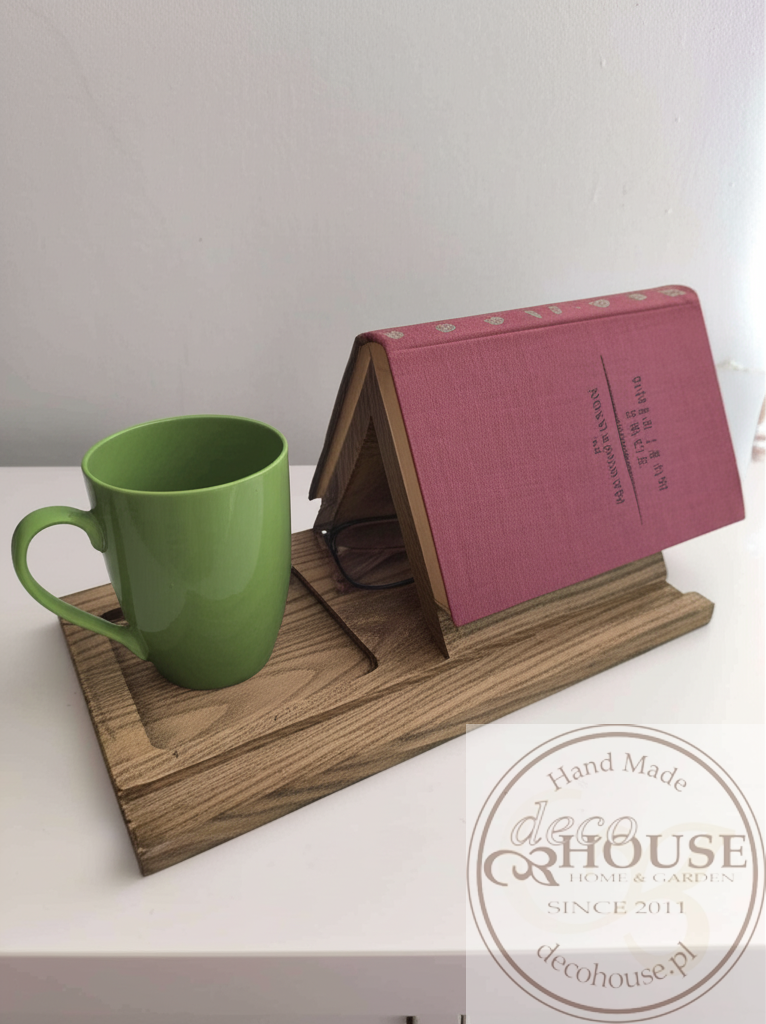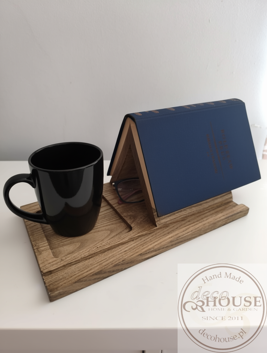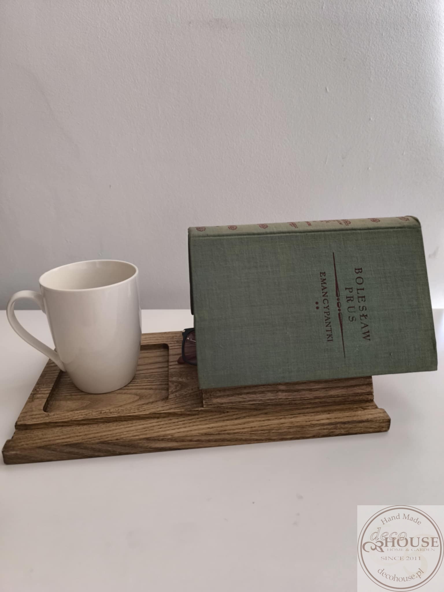 Stojak drewniany wielofunkcyjny – idealny na książkę, okulary, kubek lub tablet