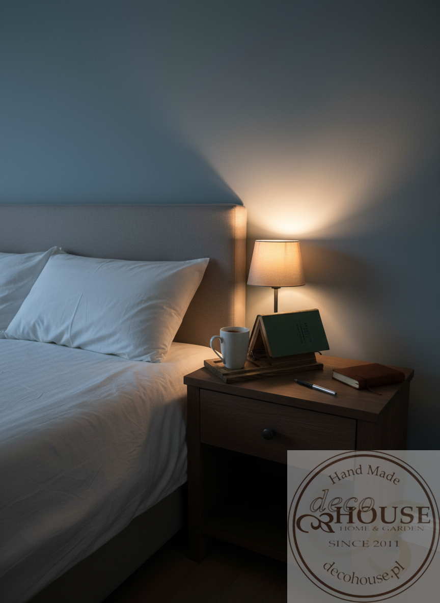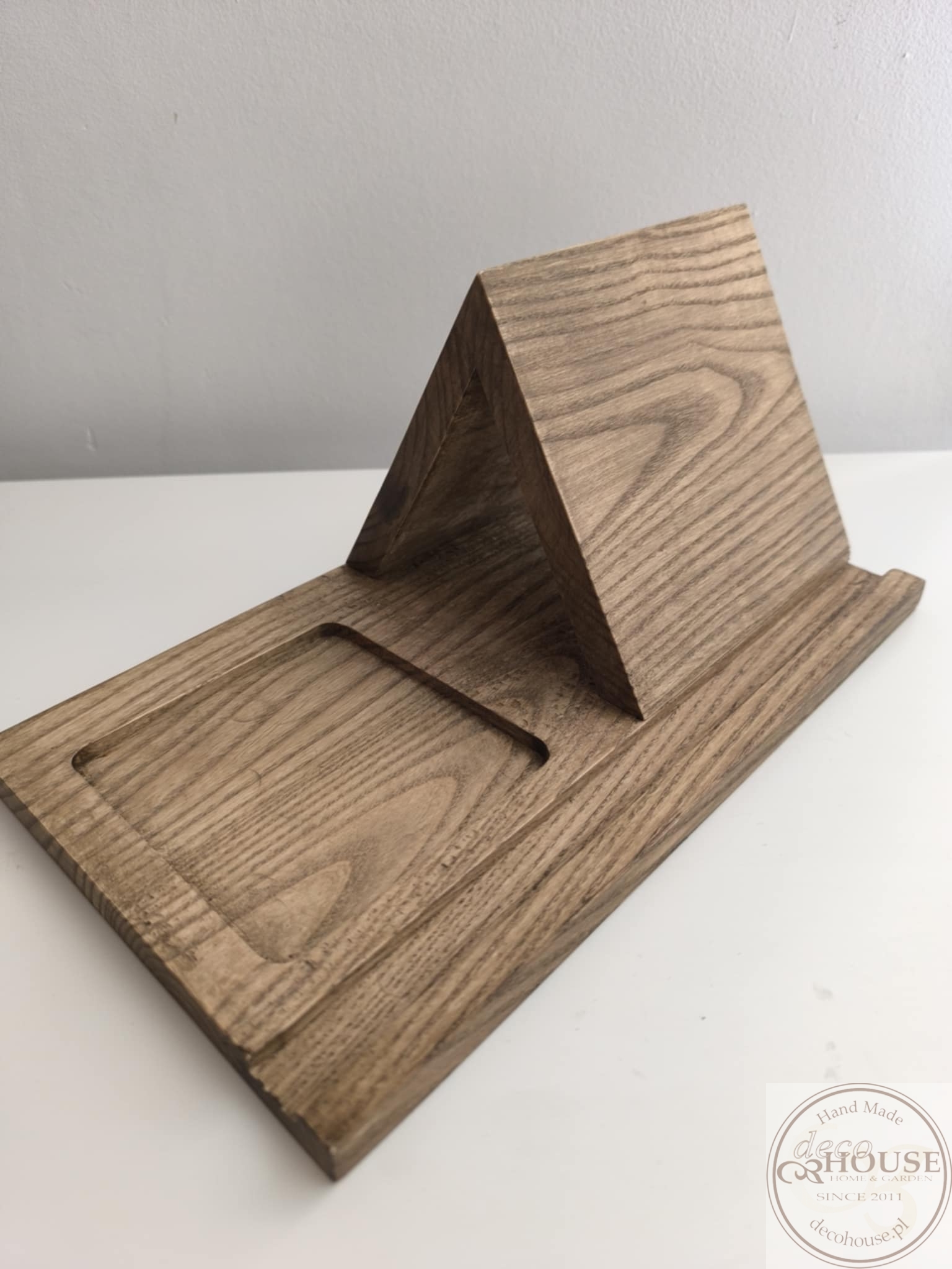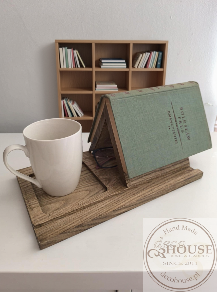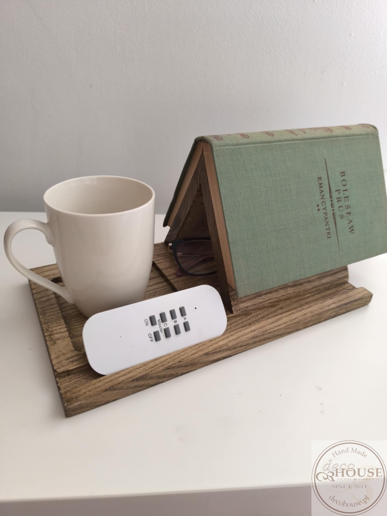 Stojak drewniany wielofunkcyjny – idealny na książkę, okulary, kubek lub tablet