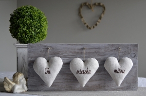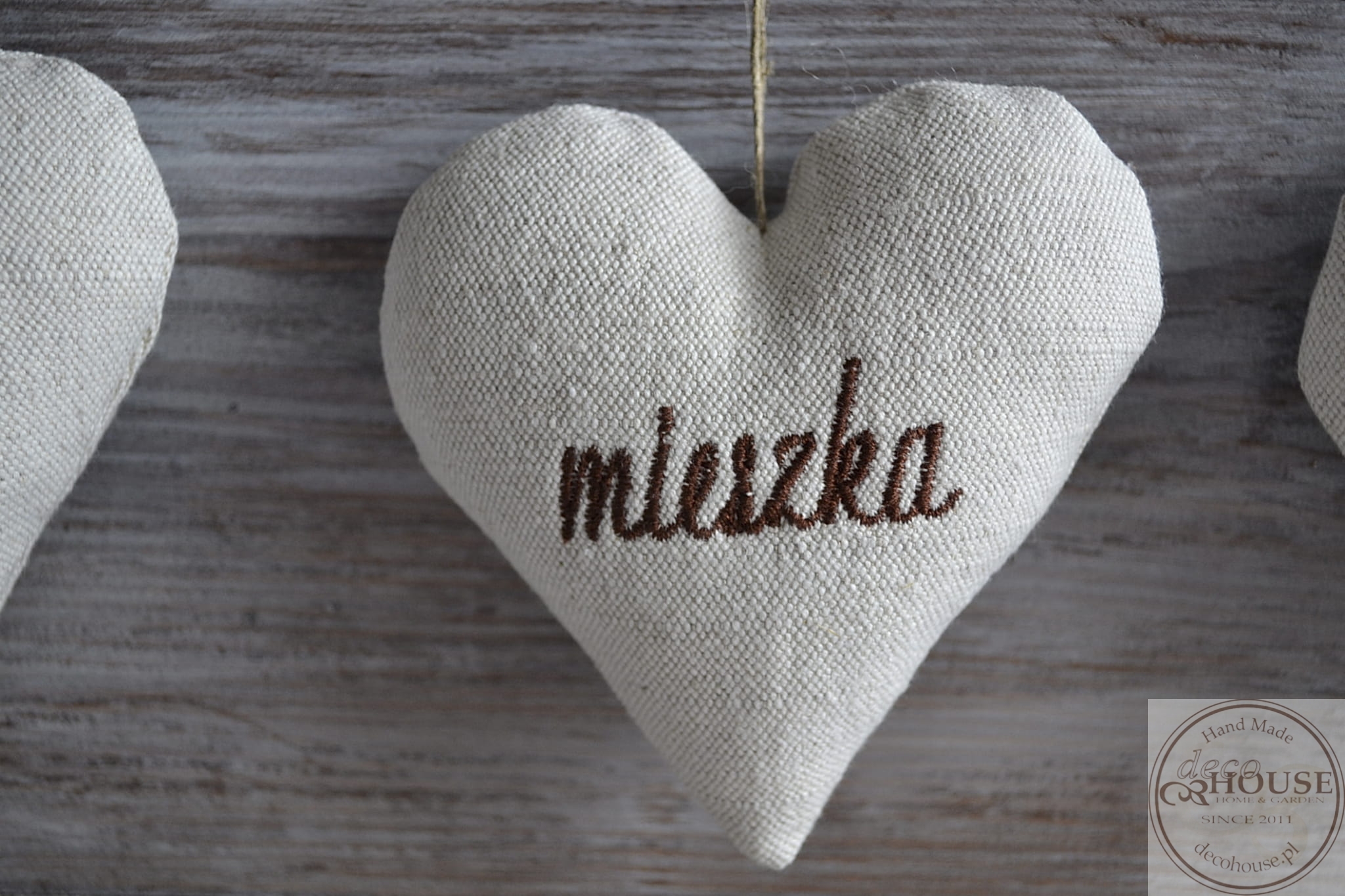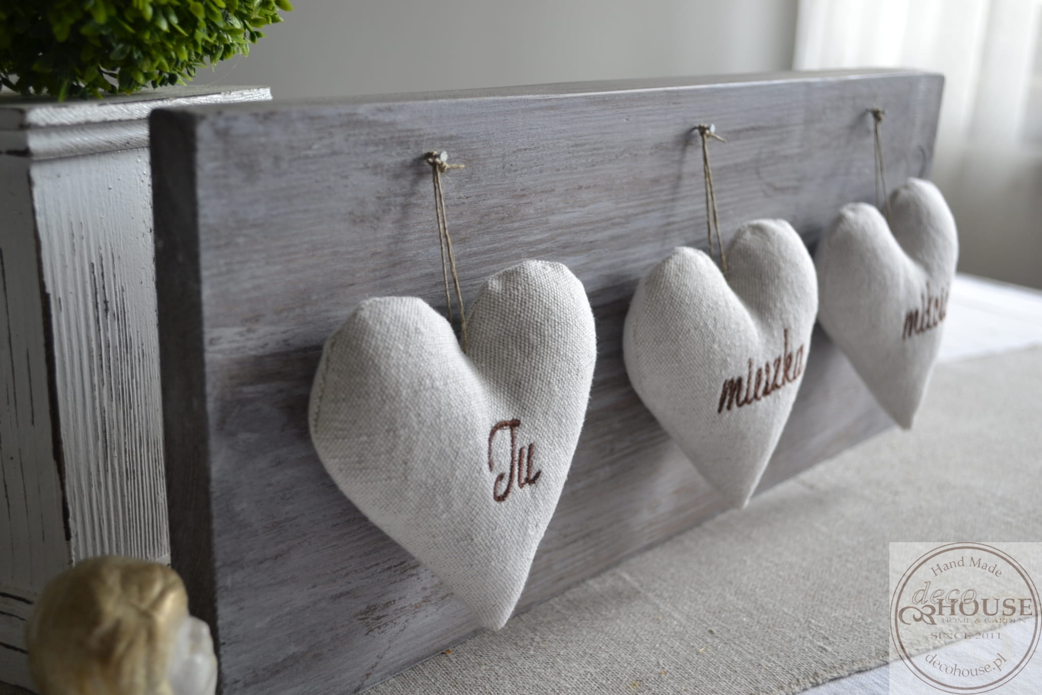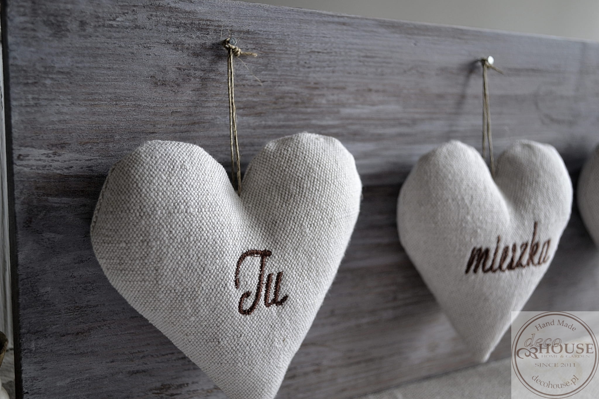 Na indywidualne zamówienie mogę wykonać tabliczkę w innym kolorze, z dowolną liczbą serduszek na, których mogę wyhaftować inny napis lub np. imiona domowników.