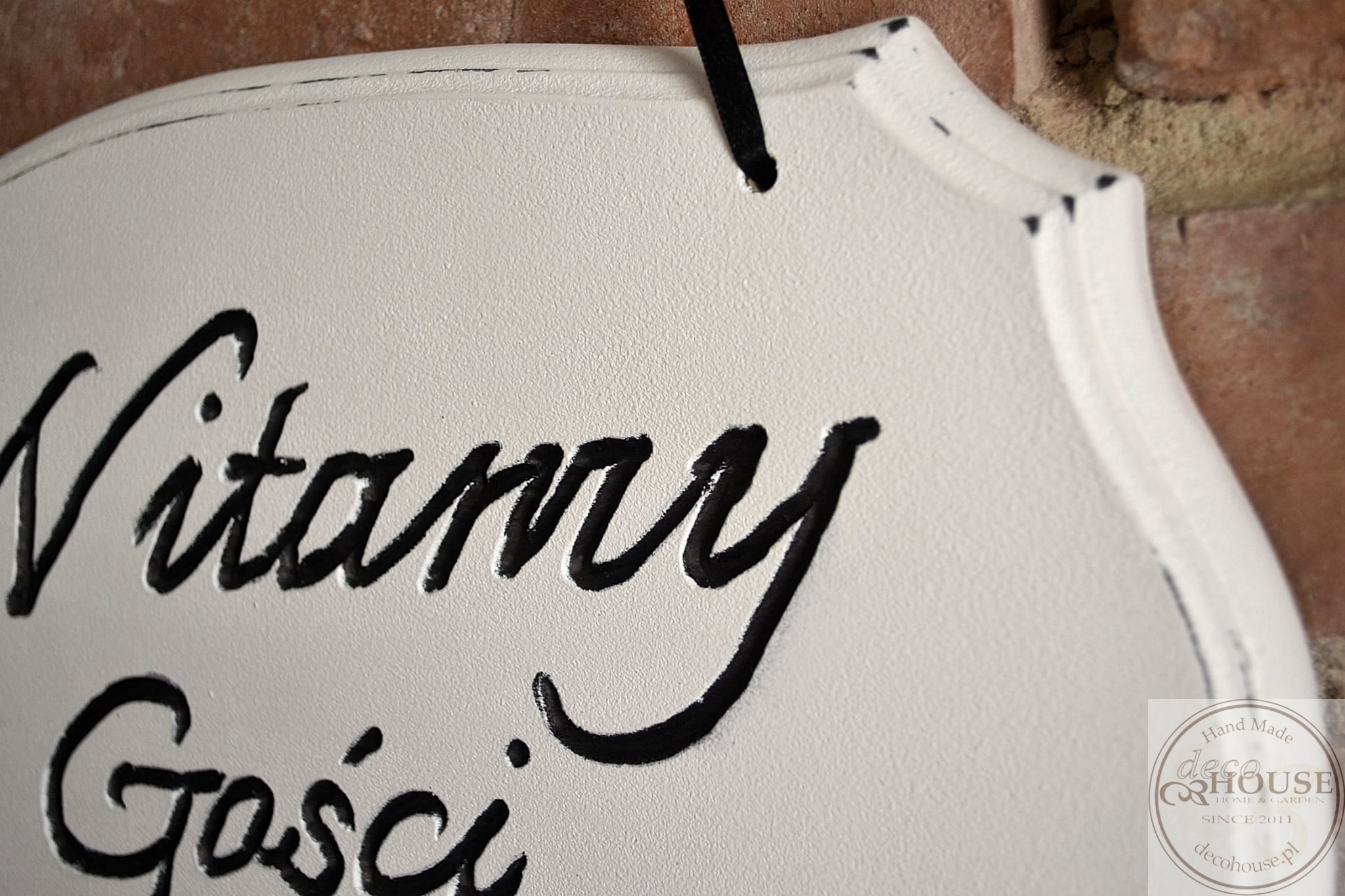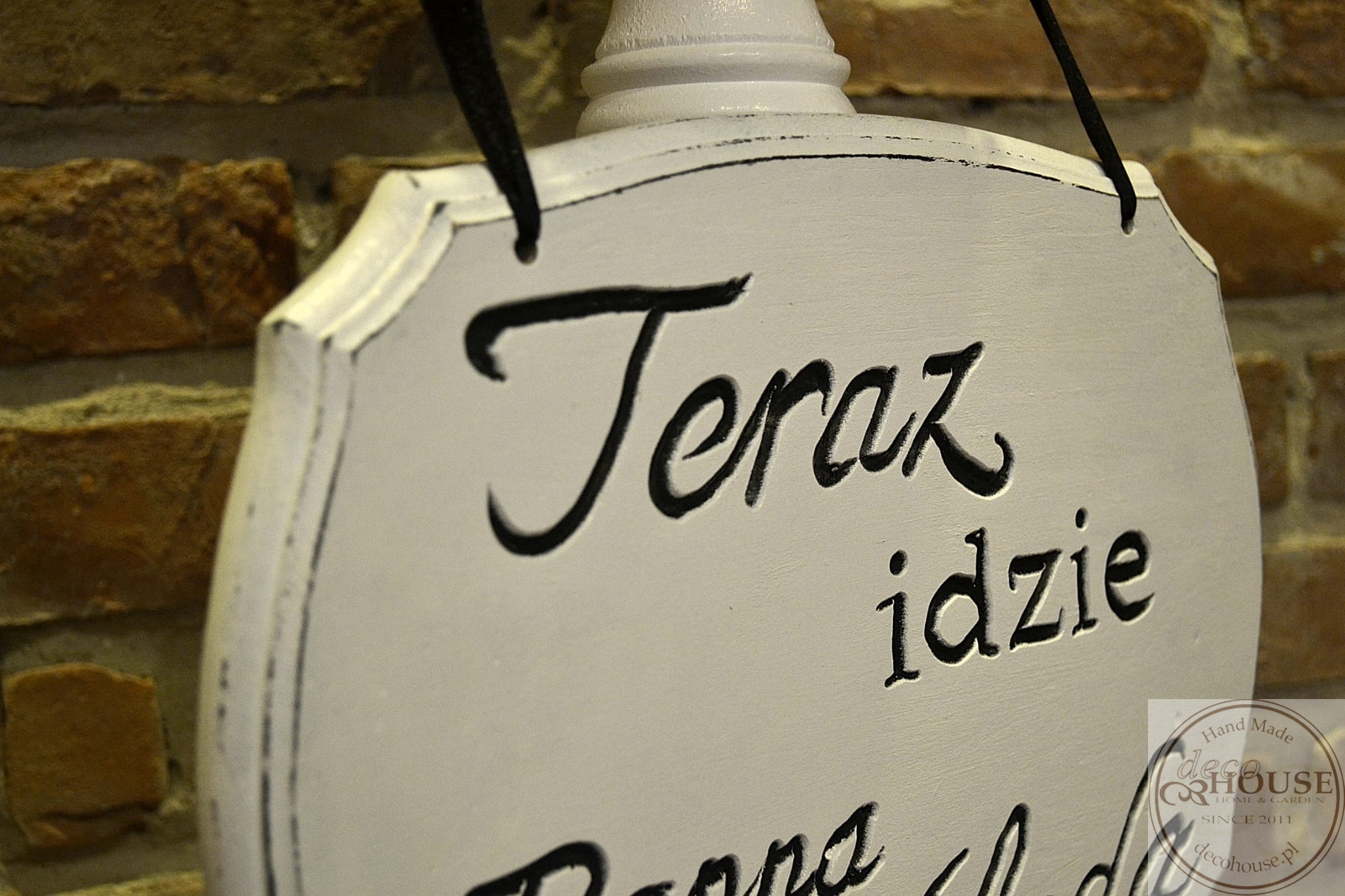 Pobielana, postarzana tabliczka z dowolnym napisem .
