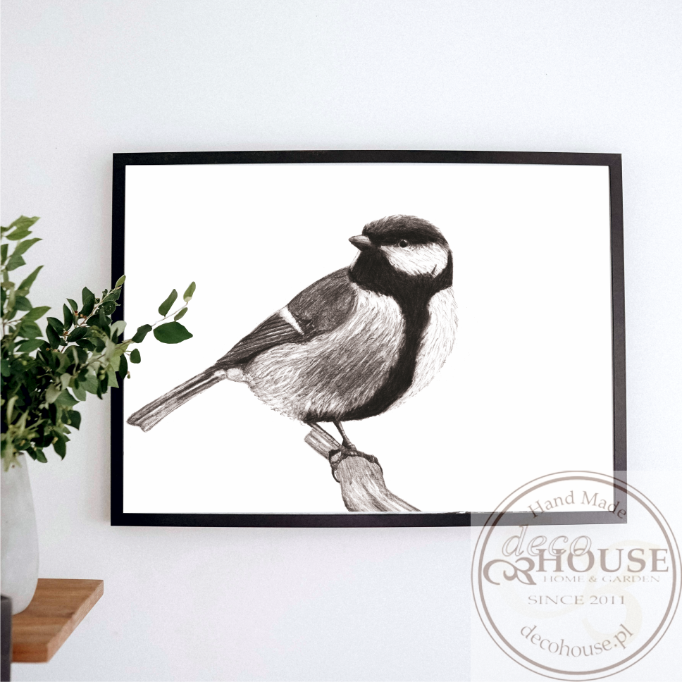 Wydruk należy do kolekcji przedstawiającej ptaki. Jest to reprodukcja naszej autorskiej pracy wykonanej ołówkiem.